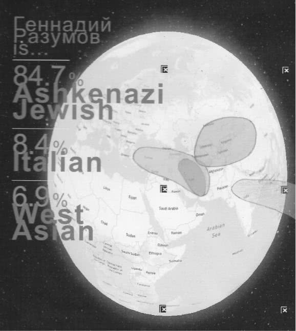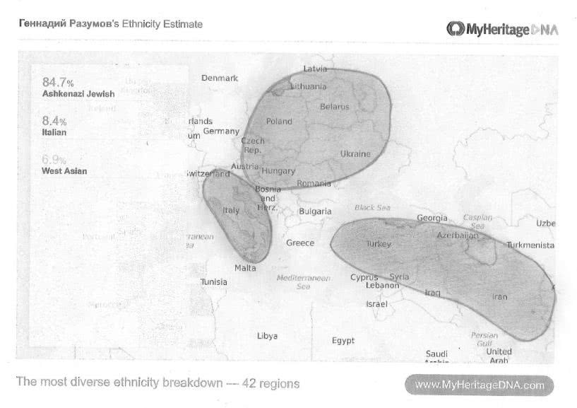 И то, и другое я прилежно выполнил, а месяца через два получил многостраничный Отчет с подробной информацией о результатах генетического исследования моего «наплевательского» отношения к этому серьезному делу. Там же была ссылка на интернетовскую страницу, где те же выводы были представалены в форме видео – движущей цветной картографической картинки.