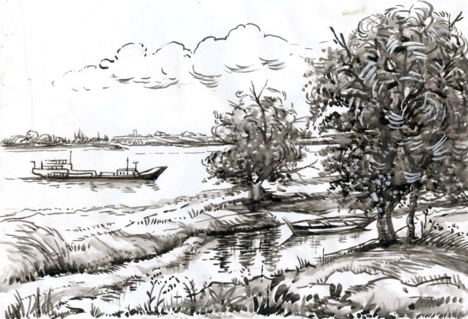 …Тот, кто впервые оказывался в этих местах в конце мая – начале июня, мог наблюдать бескрайнее, на десятки километров, половодье. В средней полосе половодье бывает месяца на два раньше, в тех же местах половодье начинается после того, как заполнятся все водохранилища от верхнего течения Волги, и тогда начинается водосброс с Волжской ГЭС. Тогда всё воздушное пространство заполняется мошкой, от которой на открытом пространстве спасения нет. Местные жители и те, кто не одет в военную форму, спасаются от этой напасти москитными сетками, как у пчеловодов.