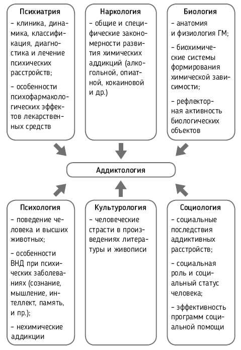 Аддиктология находится на стыке нескольких дисциплин (рис. 1), (Хуснутдинова и др., 2017).