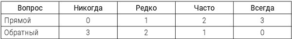 Инструкция. Ответьте на каждый вопрос с учетом того, в какой степени он характеризует вас и ваше поведение: никогда, редко, часто, всегда.