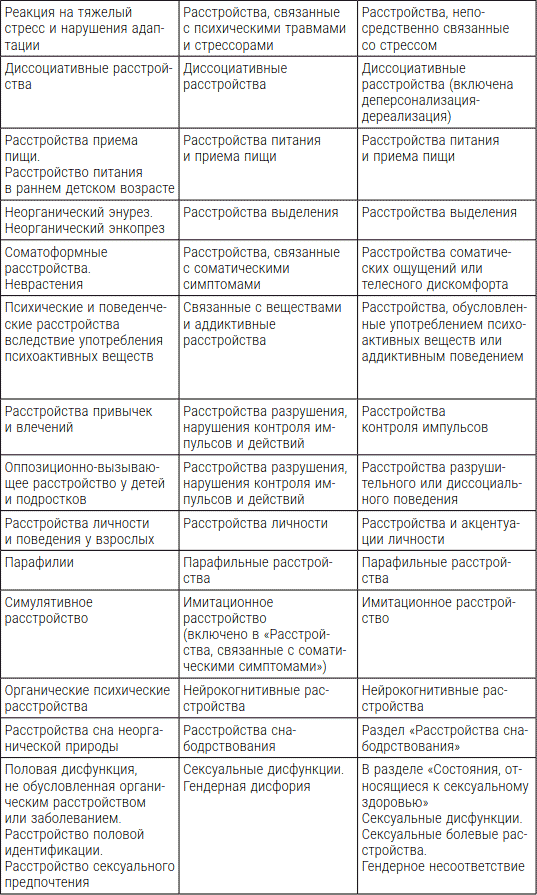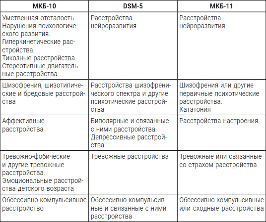 Сравнительная характеристика рубрик МКБ-10, DSM-5 и МКБ-11