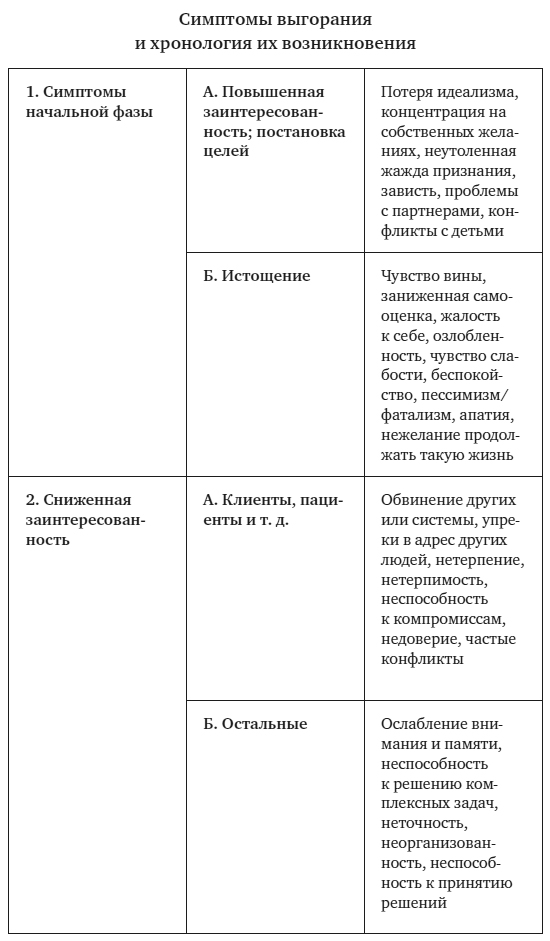 Герберт Фройденбергер и Гейл Норт (Freudenberger H., North G., 1992) выделяют двенадцать фаз выгорания: