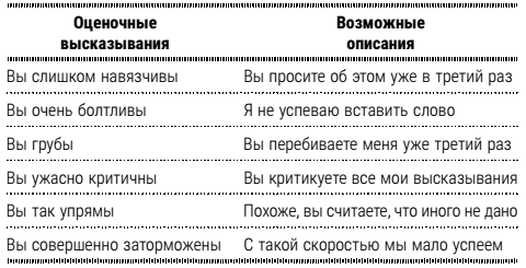 Не говорите: «Почему вы злитесь на меня?» – Это уже чтение мыслей, а не проверка восприятия. Вместо этого скажите: «Я вижу, что вы стучите ногой», «Я хотел бы знать, как вы себя чувствуете?», «Вы разозлились на меня?»