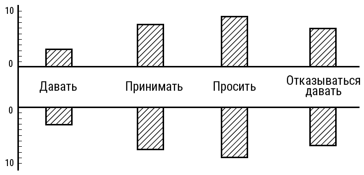 Чем больше позитивные поглаживания преобладают над негативными, тем выше от 0 располагается колонка.