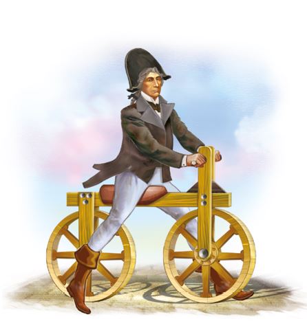 Прежде всего, селерифер следовало снабдить хоть каким-то рулем. И это сделал в 1816 году немецкий изобретатель барон Карл Дрейз. Он занимал пост главного лесничего Баденского герцогства, и, конечно, ему приходилось часто ездить по окрестным лесам. Может быть, поэтому он и принялся за усовершенствование селерифера.
