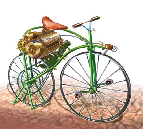 Все же широкого распространения паровые велосипеды не получили. Хоть и были они моторными, однако назвать их мотоциклами, пожалуй, нельзя. Для настоящего мотоцикла требовался совсем другой мотор.