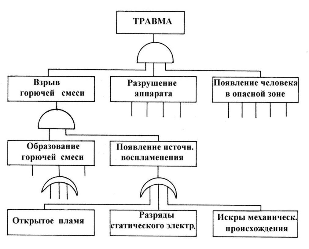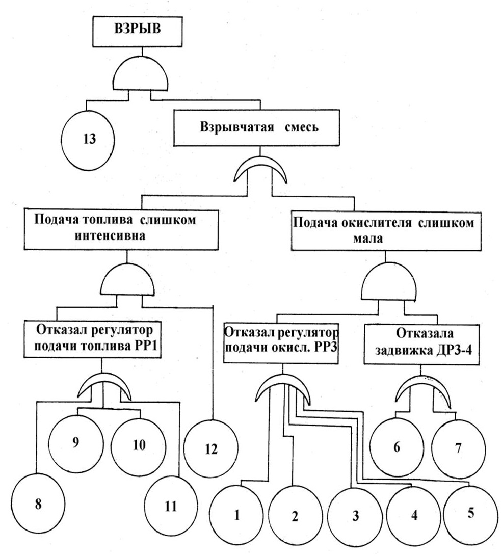 Рис. 2.6. Дерево отказов для анализа взрыва в химическом реакторе: