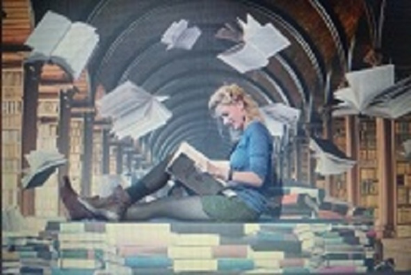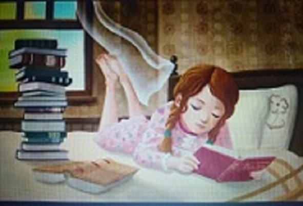 Девушка даже в кровати читает. Она в чтении книг, немало – понимает!