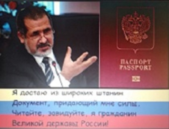 Я достаю из широких штанин вместо французского коньяка, корочку российского паспорта!