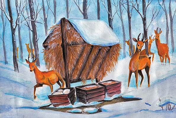 Понаблюдав за хорошим аппетитом животных, и от зимней прогулки на свежем морозном воздухе мальчишки и сами проголодались. Тихо, чтобы не спугнуть косуль, друзья достали свои припасы и быстро с ними расправились. Затем продолжили свой путь и вскоре оказались на противоположной стороне леса.