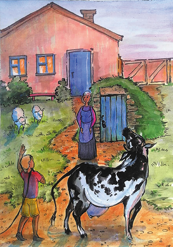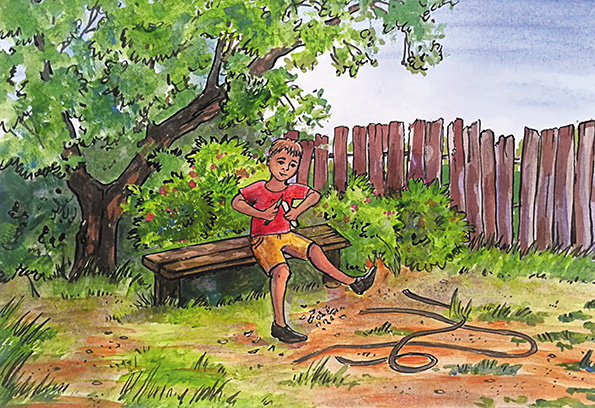 Миша сидел в саду на скамейке под деревом и увлечённо мастерил настоящий пастуший кнут. Завтра будет нелёгкий день – подошла очередь их семьи пасти сельское стадо коров и овец.