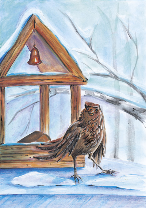 Зимой холодной в кормушку у окна