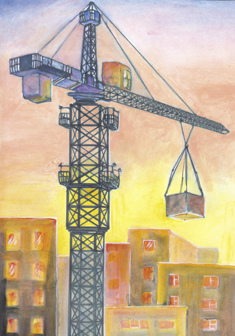Дома высокие возводит.