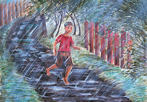 Уставшая от зноя земля жадно впитывала воду. Ливень был такой силы, что просто стоял стеной. Вода шумными потоками устремилась в низины, превращая дороги в непроходимые болота из чернозёмной жижи. Геннадию пришлось снять сандалии, чтобы не потерять их в липкой грязи. Он бежал босиком по лужам, утопая по щиколотку в тёплой и мягкой жиже. Брызги из луж разлетались в разные стороны, а грязь из-под ног летела на спину. Радость и восторг переполняли душу мальчика, когда он бежал домой, и тёплые тугие струи дождя с силой били в лицо, грудь, спину.
