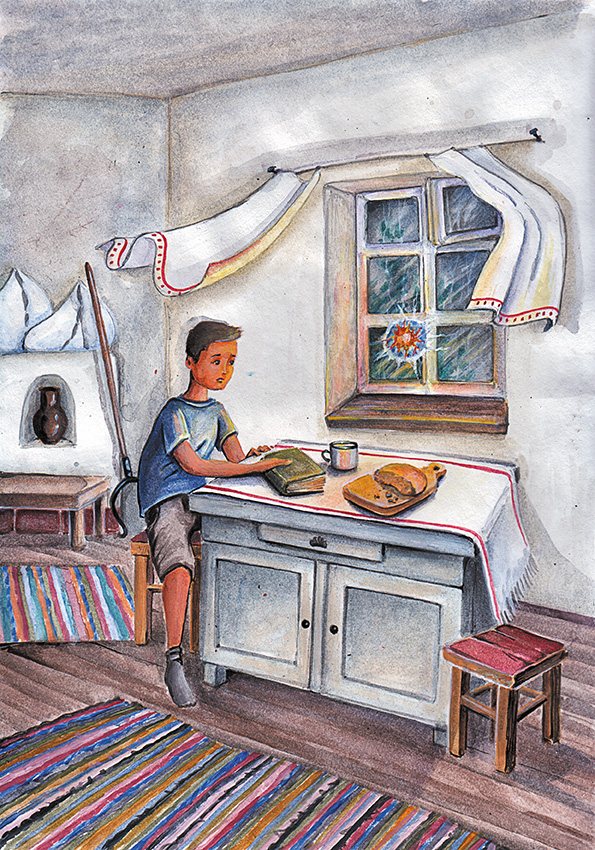 Дома он скинул с себя мокрую одежду, вытерся полотенцем, надел сухую одежду и только теперь, переведя дух, почувствовал, как проголодался. Гена прошёл на кухню, где на столе, как обычно, стояла кружка парного молока, а рядом лежала краюха душистого белого хлеба. От его запаха закружилась голова! Мальчишка уселся за стол и с огромным аппетитом стал уплетать душистый свежеиспечённый каравай, корочка которого аппетитно хрустела. Хлеб он запивал вкусно пахнущим парным молоком, и, казалось, что вкусней этого хлеба и молока ничего не бывает!