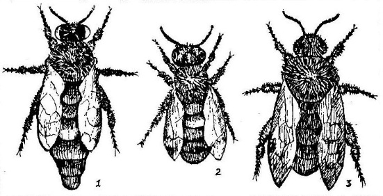 1 – матка, 2 – рабочая пчела, 3 – трутень.