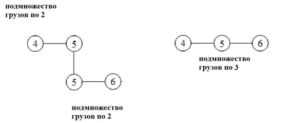 Для данного множества грузов максимальная мощность подмножеств грузов = 3. М