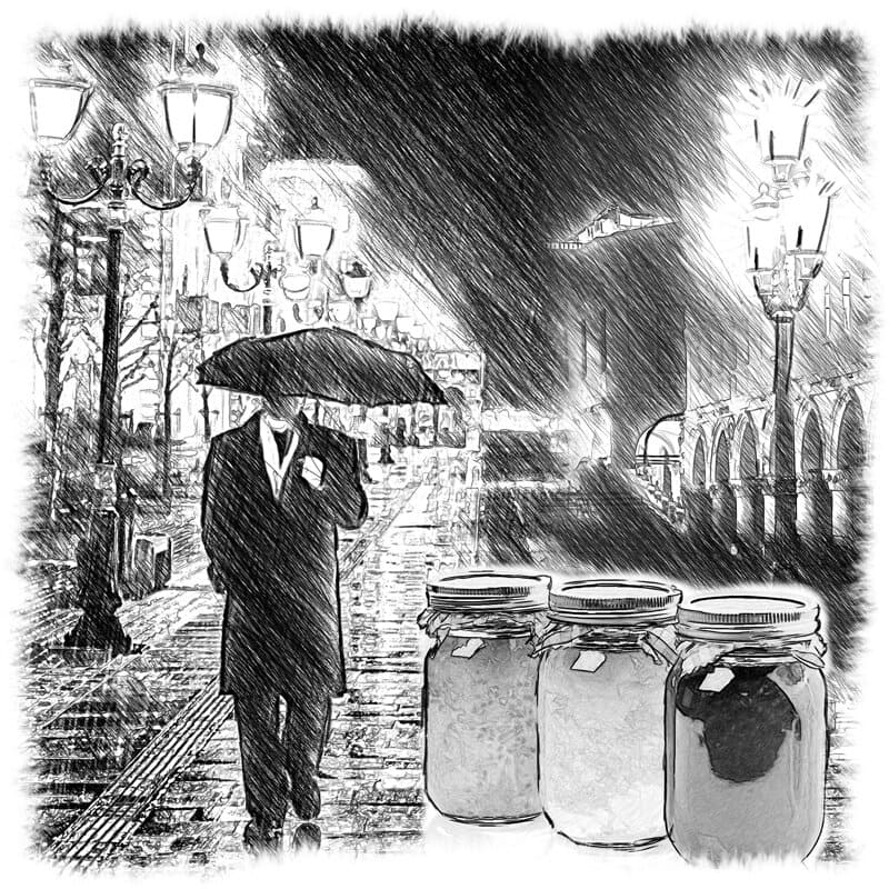 Чтобы немного развеять свою хандру, коллекционер надевал плащ, натягивал на голову кепку, в надежде, что не будет видно его грустных карих глаз, брал в руки зонт и растворялся в улочках дождливого города. Он неторопливо гулял, вспоминая под барабанную дробь падающих капель эпизоды из своей долгой жизни.