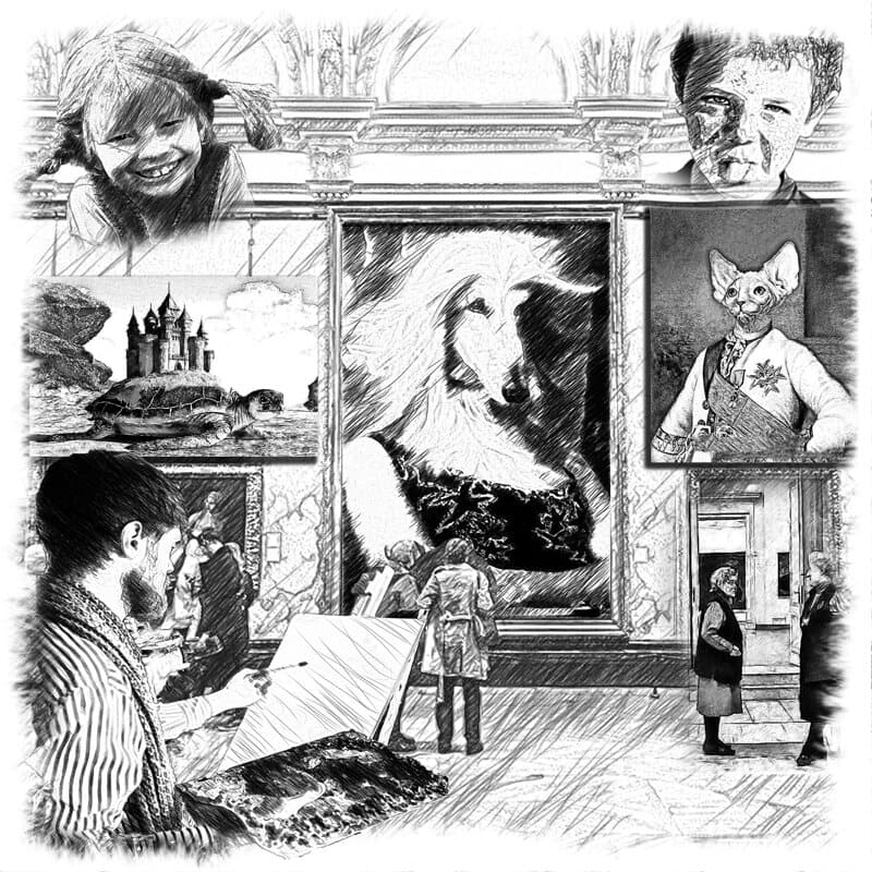 Вторая сущность вела себя, можно сказать, потише, не так ярко, как первая. Но она действовала, по привычке, исподтишка. То пририсует кому-то, изображённому на картине, нос, то приделает голову борзой собаки к телу светской барышни. А однажды учудила, нарисовав готический замок на панцире черепахи.