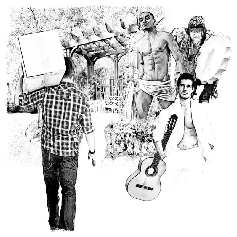 Вместе с тем мы с Андреем начали неспеша заносить вещи в дом. И только тогда в солнечных лучах, виртуозно проникающих на землю сквозь виноградные листья, я заметил трёх граждан, сидящих на бетонных ступеньках лестницы. Один был темнокожим, в набедренной повязке, другой – в белой одежде, с гитарой, третий держал возле груди бубен. Увидев, что я разглядел их, они почти хором обратились ко мне с вопросом: