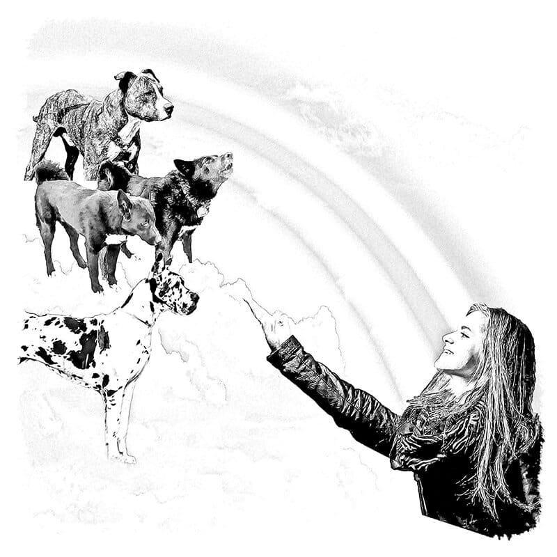 Она стояла на Радужном мосту. Они бежали ей на встречу. Она улыбалась. Они радостно виляли хостами.