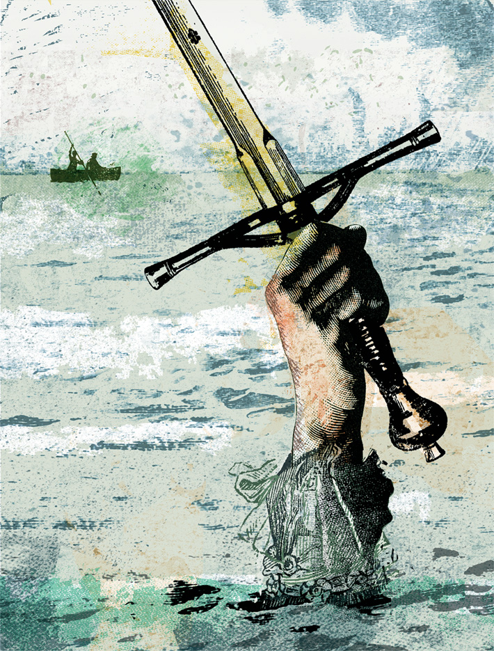 Взглянув в указанном направлении, Артур увидел большую руку, державшую над водой огромный меч с роскошной рукояткой.