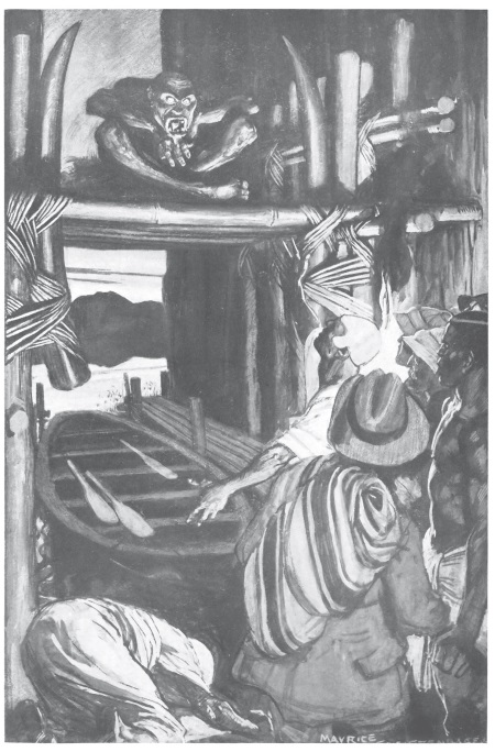 Сцена получилась воистину адская. Напыщенный Сатана-Мотомбо на тонких жабьих ногах, большие костры, пылающие у стен пещеры, зарево заката на недвижной воде и лесистом склоне, белые фигуры понго, повернувшихся к злосчастному преступнику и шипящих, как разъяренные змеи, – все это казалось кошмаром.