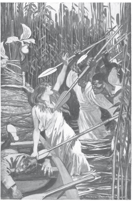 Оставшись один, Стивен продолжал попытки спасти орхидею, пока воин-понго не ударил его копьем в плечо. Лишь тогда Стивен выпустил цветок и попробовал отступить. Слишком поздно! Полдюжины понго, преградив Стивену путь к камышам, направлялись к нему с угрожающим видом. Я не мог помочь ему, поскольку, сказать правду, угодил в выбоину – след гиппопотама, а зулусские охотники и мазиту были еще далеко. Стивен наверняка погиб бы, если бы не отвага юной Хоуп. Она шла к берегу впереди меня и, обернувшись, увидела, что Стивен в беде. Хоуп бросилась обратно, словно львица, спасающая детеныша.