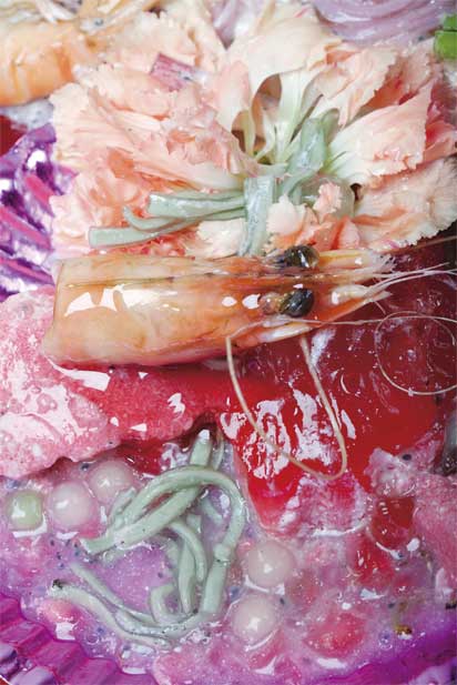 Что бы она ни говорила, но Мэйси Казинс снимает милые и красивые фотографии. Правда, не настолько милые и красивые, чтобы понравиться вашей бабушке. Ее глянцевые гротескные фотоработы можно назвать отталкивающими и одновременно притягательными. Цветовая палитра «винегрета» из голов креветок и срезанных цветов является, вне всякого сомнения, «девчачьей». Серия называется «Из чего сделаны девочки» и представляет собой своеобразное исследование женственности.