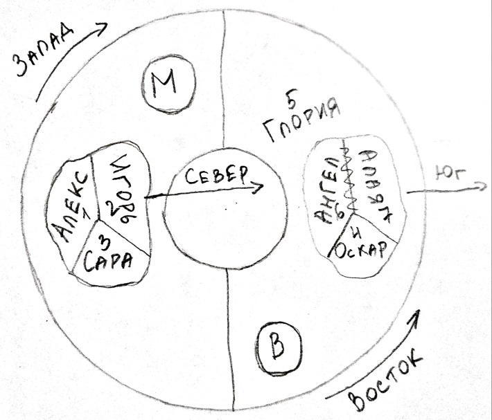 Стороны света здесь определялись так же, как и на Терре, только в ее азимутальной проекции, где центром является северный полюс. То есть, Войлюбия в простом обозначении выглядела примерно вот так: