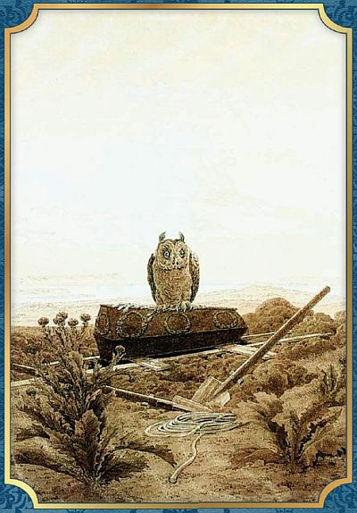 Фридрих К. Д. Пейзаж с могилой, гробом и совой. Ок. 1836