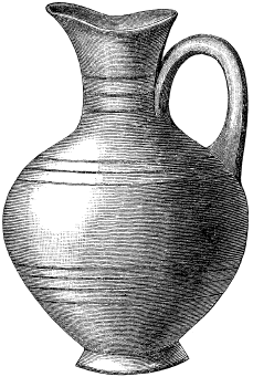 На рис. 404 – большая темно-коричневая ойнохоя с луковицеобразным туловом. Рис. 405 изображает кувшин с одной ручкой и с носиком.