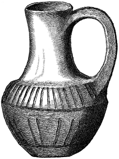 Рис. 387. Кувшин из терракоты с прочерченным орнаментом. (Половина натуральной величины. Найден на глубине 26 футов)