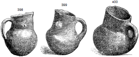 Рис. 398–400. Кувшины. (1:4 натуральной величины. Найдены на глубине от 26 до 32 футов)