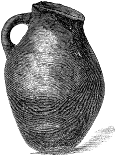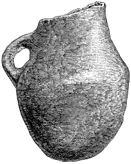 Рис. 396. Кувшин из очень грубого материала. (1:4 натуральной величины. Найден на глубине 32 фута)