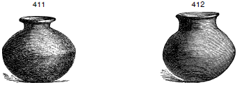 Рис. 411, 412. Бутыли из терракоты. (1:4 натуральной величины. Найдены на глубине от 22 до 32 футов)
