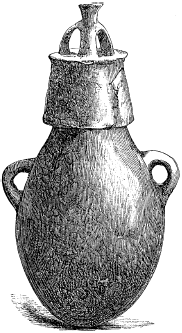 Рис. 419. Кувшин с двумя ручками; крышка в форме короны. (1:5 натуральной величины. Найден на глубине 26 футов)