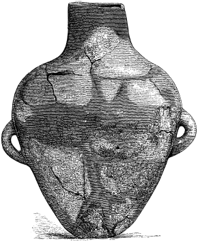 Из кувшинов той же формы в других местах я смог найти только один, сделанный на гончарном круге, в Британском музее; он был найден в погребении близ Вифлеема. Еще два, также сделанные на гончарном круге, найденные в древних египетских погребениях, также находятся в Британском музее; и один, обнаруженный на Кипре, хранится в Лувре. Далее я должен упомянуть как относящийся к подобному типу кувшин на рис. 11 в книге Йозефа Хампеля «Доисторические древности Венгрии» (Hampel J. Antiquités préhistoriques de la Hongrie. 111. VI); а также кувшины в Национальном музее Будапешта, которые были найдены в Сихаломе и представлены на фотографиях, соответствующих номеру стеклянных витрин, в которых они хранятся (Pl. IX. № 10, 20, 21).