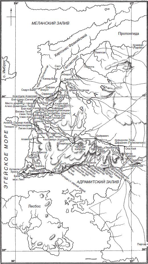 Однако, сказав это, мы не обязательно утверждаем тем самым, что все топографические детали, упомянутые в «Илиаде», могут быть обнаружены непосредственно вблизи от Гиссарлыка. Как заметил доктор Шлиман, «Гомер передает легенду о трагической судьбе Трои в таком виде, в котором получил ее от предшествующих бардов, облачая деяния легенды о войне и разрушении Трои в одежды своего собственного времени». Один якобы критик доктора Шлимана недавно открыл, что вся география «Илиады» эклектична и во всех своих деталях не соответствует ни одной местности на Троянской равнине. Однако это открытие уже не новое; об этом писал я сам четыре года назад в журнале «Академи», а также и доктор Шлиман в «Илионе», и его можно найти и у других, предшествовавших нам, авторов. Определяя, действительно ли второй доисторический город на Гиссарлыке является гомеровским Илионом, вряд ли необходимо согласовывать все топографические указания «Илиады» с его местоположением, а также согласовывать картину троянской цивилизации, данную нам в гомеровских поэмах, с той цивилизацией, которую фактически открыли нам раскопки доктора Шлимана.