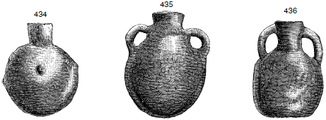 Рис. 434–436. Плоские кувшины в форме охотничьих фляжек. (Примерно 1:4 натуральной величины. Найдены на глубине 26 футов)