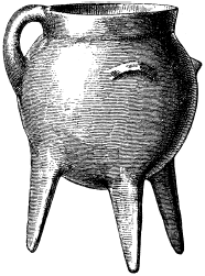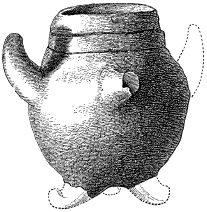 Рис. 442. Сделанный на гончарном круге сосуд-треножник с ручкой и двумя выпуклыми украшениями в форме ушек