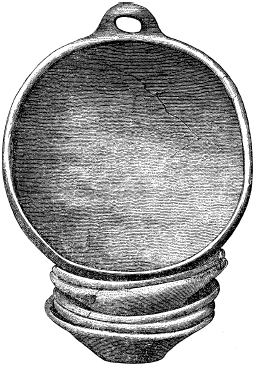 На рис. 480 – слегка обожженный предмет из терракоты в форме кубка с отверстиями наподобие решета; он не может быть ничем иным, как курильницей. Два подобных сосуда, которые профессор Вирхов считает курильницами, находятся в его коллекции древностей из Заборова в Позене. Похожие курильницы хранятся в Меркишес-музеуме в Берлине.