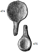 Рис. 474, 475. Терракотовые ложки. (Половина натуральной величины. Найдены на глубине от 22 до 26 футов)