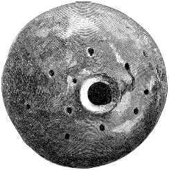Рис. 478. Большая воронка полушаровидной формы с отверстиями наподобие решета. (Половина натуральной величины. Найдена на глубине 26 футов)