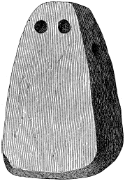 Рис. 479. Фрагмент из терракоты с двумя неглубокими отверстиями спереди наподобие глаз и отверстием от одного бока до другого. (Половина натуральной величины. Найден на глубине 26 футов)