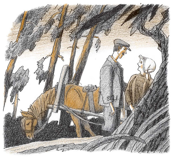 Телегу потряхивало на корнях, и, хотя Петька сидел на сене, ему скоро стало неудобно. Захотелось пить. Дядя с тёткой о чём-то тихо разговаривали и на него не смотрели, будто забыли. Это показалось обидным: дома о нём никогда не забывали.