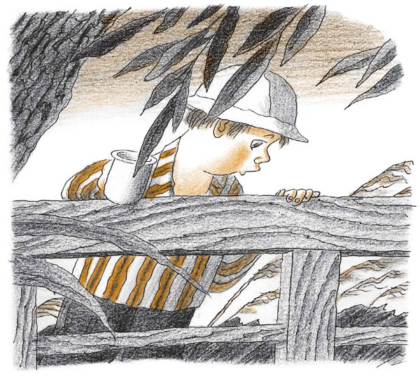 Петька с кружкой в руках пошёл на мостик и глянул вниз. Сначала он видел только песок и водоросли. Да какие-то тени пробегали по светлому дну. Приглядевшись, он разобрал, что это не тени, а рыбы с тёмными спинками. В водорослях они останавливались, и можно было различить розовые плавнички и полоски на серебристых боках.