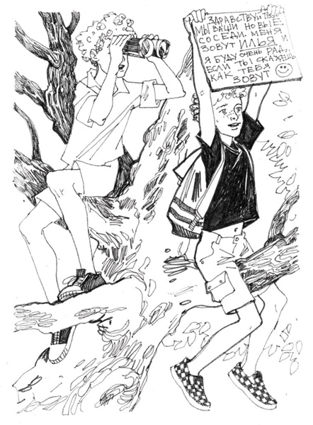 До конца недели Ильюшка составлял послания и читал их мне. Я на всё соглашался. Он перечитывал, рвал и начинал составлять новое. Наконец он написал: «Здравствуйте. Мы ваши новые соседи. Меня зовут Илья. Я буду очень рад, если ты скажешь, как тебя зовут». Я поскорее согласился, что это самый удачный вариант, и он стал выводить его большими буквами на картонке.