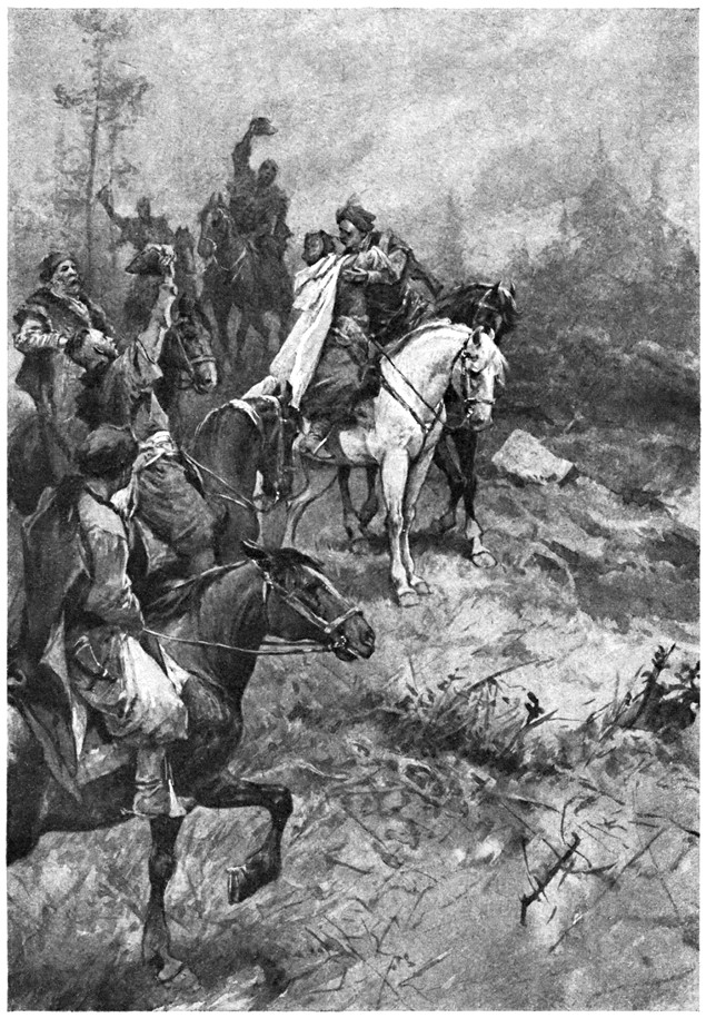 Потом, натянув с помощью слуги подбитый выпоротками полушубок, незаменимый в холодные вечера, приказал отправляться в путь; но едва тронулись, впереди, на склоне холма, показалось пятеро верховых.