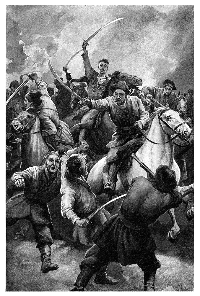 …дикий солдат Кмицица в дыму, огне и пламени, столбом вырывавшемся вверх, крушил перепуганных и ослепших от ужаса людей.